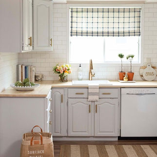 Dieser Flip war Verena's erstes Streichprojekt - was für eine tolle Leistung. Anstatt die gar nicht mehr ansehnliche Küche des neuen/alten Hauses rauszureißen, hat sie mit viel Liebe die Verwandlung selbst in die Hand genommen. Unterschränke in Bayberry, Oberschränke in Acadia Pear, Fliesenspiegel und Arbeitsplatte in Limestone. Wunderschön!